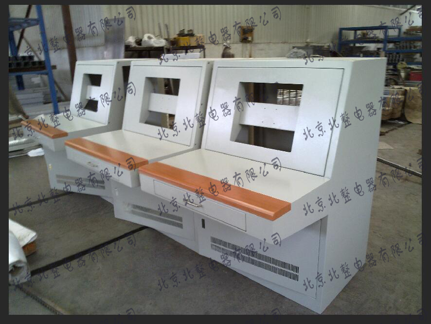 三段式操作臺整體為三段式,分為上中下三部分,上下皆可前后開門,中部開門為帶支撐的臺面,二段式進線鍍鋅底板,鍍鋅安裝板,上部可安裝觸摸屏或顯示單元,中部安裝按鈕指示燈及通用儀表單元,下部安裝電氣元件單元,上段下段鍍鋅安裝板,可前后開門,單門可左右互換或是換為雙開門,定制三段式帶滑輪雙齒鎖,門鉸鏈為定制內鉸鏈三點固定,門上可焊接模數孔加強筋,可配100MM或200MM底座,發泡涂膠密封條。
